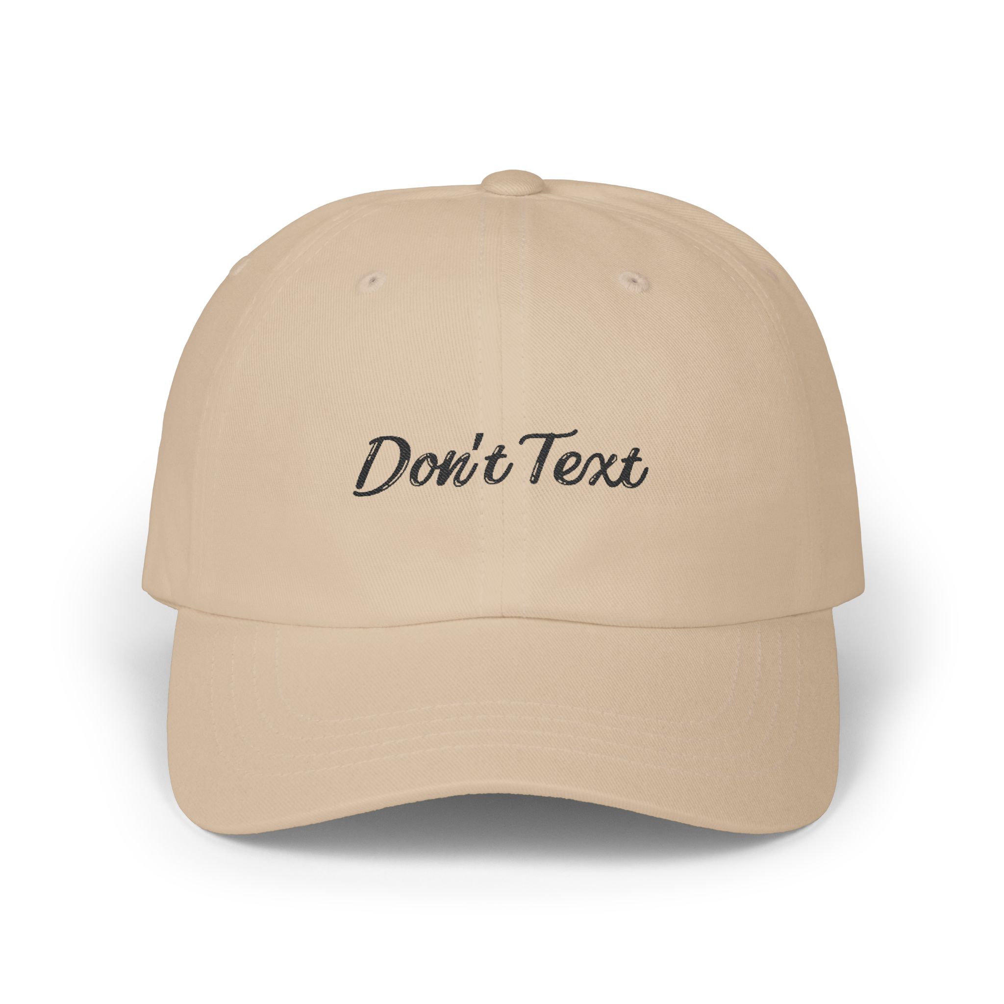 Read the cap. The “Don’t Text” Cap makes your boundaries clear without saying a word. Minimal, direct, and slightly savage, it’s the perfect accessory for protecting your peace. Ideal for solo days, offline vibes, and energy-saving mode.